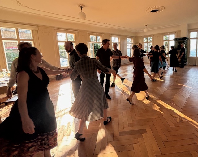 Wir tanzen einfache und raffinierte historische Tänze aus dem 17. bis zum 19. Jahrhundert. Die Tänze sind im „Longway“- Stil, bei dem Paare in einer Reihe tanzen, sowie Tänze in Kreisformation. Lass dich von den Raumwegen, abwechslungsreichen Tanzfiguren und faszinierenden Melodien mitreissen und geniesse die Begegnungen mit verschiedenen Tanzpartnern in tanzfreudiger Gemeinschaft. Im Anschluss lade ich zu einem kleinen Umtrunk ein. Wer kann, darf gerne zur Kollekte beitragen. Es gibt auch Brot und Käse…